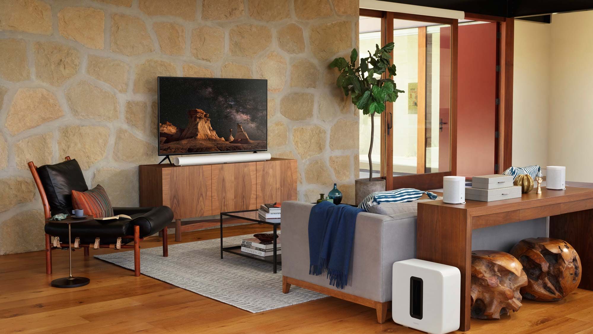 Connected over Wi-Fi, Sonos speakers and components create a flexible, whole-home audio experience that’s easy to customize and expand. Play a podcast in the kitchen, a film soundtrack in the media room, or fill the entire home with the warmth of vinyl—simultaneously and effortlessly.