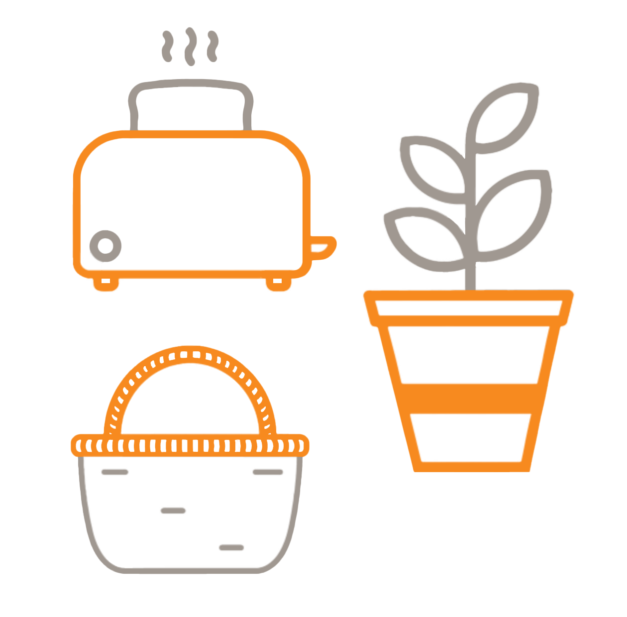 Toasters, wicker baskets, toilets, major home appliances (yet), pets, kids, plant life or threats from zombies.